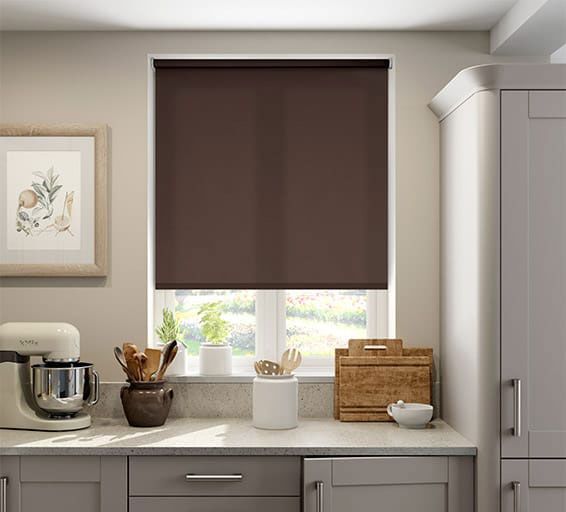 - Nhà bếp cần sự ấm cúng nhưng là môi trường dễ nhiễm bẩn, nên chọn rèm cuốn trơn có màu trầm ấm như màu nâu, vàng đậm, xanh đậm, nên sử dụng rèm cuốn có màu sắc trầm nhưng không quá tối nhằm giúp che giấu vết bẩn hiệu quả. Có thể sử dụng rèm cuốn lưới để nhà bếp thông thoáng hơn.