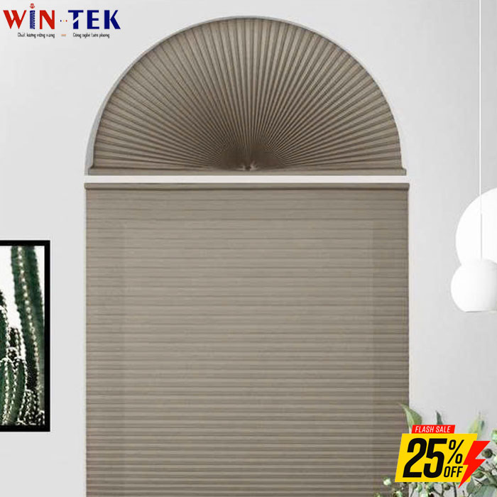 Rèm vòm tổ ong là dòng rèm chuyên dụng dành cho cửa sổ vòm, cửa cong, cửa bán nguyệt và mái kính, được thiết kế theo hình dạng cong thực tế của khung cửa. Rèm sử dụng vải tổ ong đa lớp, bên trong có các khoang rỗng giúp giữ không khí, từ đó tạo nên hiệu quả cách nhiệt – cản sáng – cách âm vượt trội.