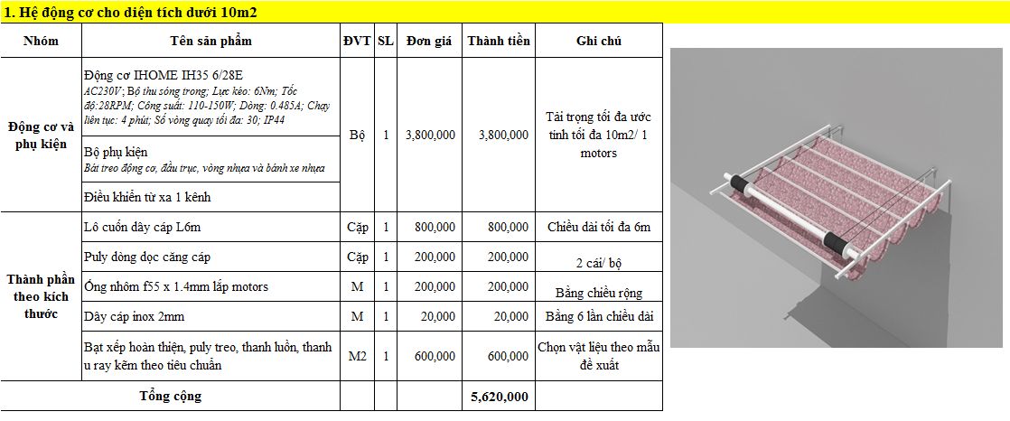 HỆ ĐỘNG CƠ CHO DIỆN TÍCH DƯỚI 10M2