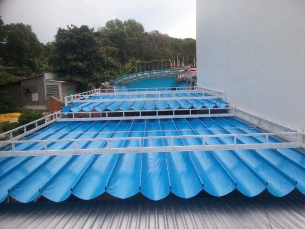– Loại vải bạt 3 LỚP dày dặn, độ bền cao, chịu được nắng mưa ngoài trời. Chất liệu này sử dụng cho các loại rèm trần che nắng mái kính ở ngoài trời ở các quán bia, quán cafe ..v..v