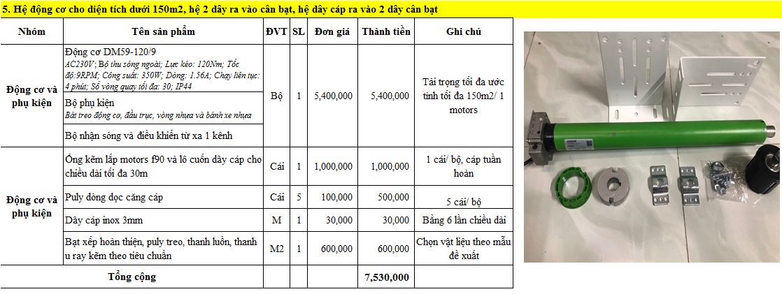 BẢNG BÁO GIÁ HỆ ĐỘNG CƠ BẠT TRẦN XẾP LỚP TỰ ĐỘNG