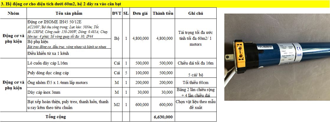 BẢNG BÁO GIÁ HỆ ĐỘNG CƠ BẠT TRẦN XẾP LỚP TỰ ĐỘNG