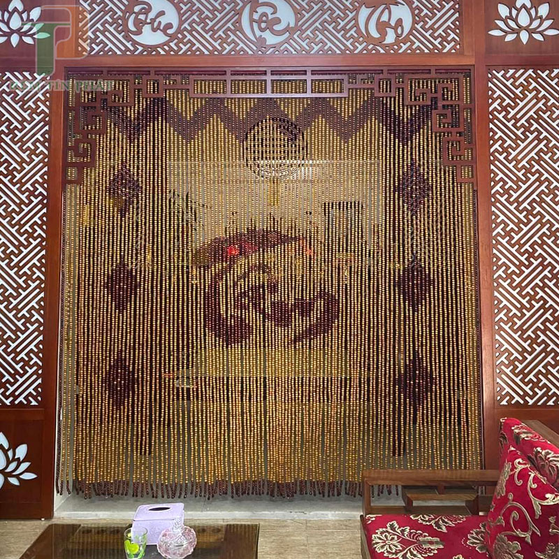 Rèm bàn thờ đẹp bằng hạt gỗ pơ mu RHG67