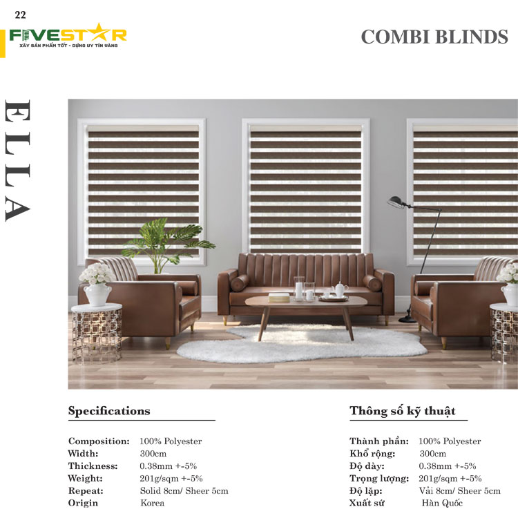 Thông số kỹ thuật mành cầu vồng hãng FIVESTAR mã ELLA