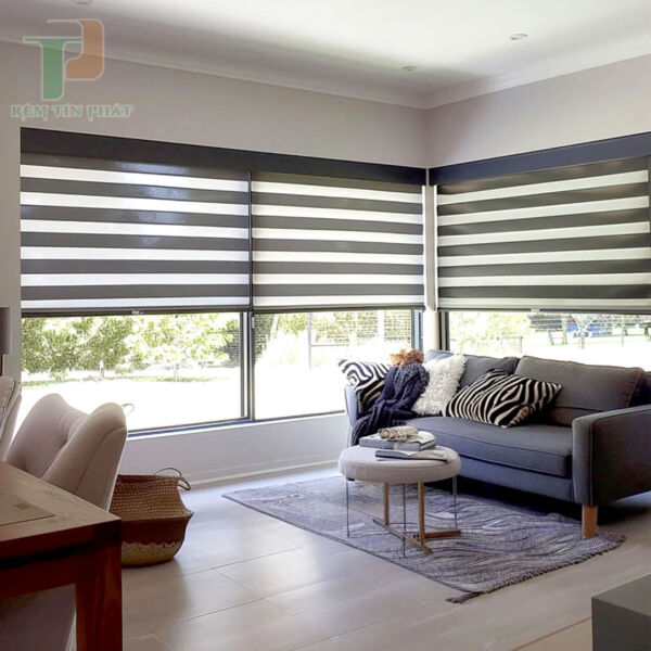 Với thiết kế đan xen giữa một dải vân rèm dày không xuyên sáng và 1 dải vân rèm mỏng xuyên sáng, rèm cầu vồng mang tới cho căn phòng của bạn một vẻ đẹp vừa hài hòa nhưng cũng không kém phần mới lạ và cá tính. Dải vân rèm dày có thể đảm nhiệm tốt chức năng chống nắng, cản sáng lên tới 100%. Ngược lại, vân vải mỏng dù không làm tốt chức năng này nhưng cũng có thể giúp giảm sự xâm nhập trực tiếp từ các tia UV bên ngoài môi trường vào phòng. Hai sự kết hợp này giúp điều hòa ánh sáng tự nhiên trong ngôi nhà một cách linh hoạt và hiệu quả.