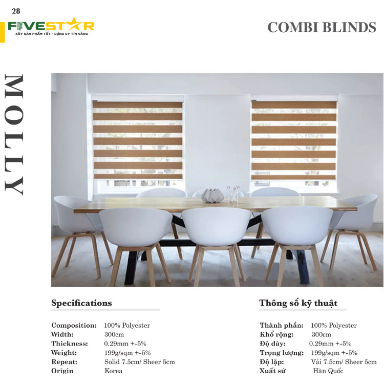 Thông số kỹ thuật mành cầu vồng hãng FIVESTAR mã MOLLY