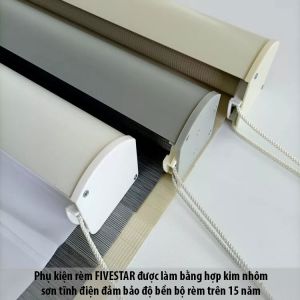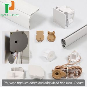 Hệ thống phụ kiện: ống cuộn rèm, thanh đáy, máng che được làm bằng chất liệu nhôm cao cấp, sơn tĩnh điện đồng màu với màu vải. Dây kéo làm bằng dây dù nhập khẩu Hàn Quốc. Củ quay làm bằng nhựa cao cấp có độ bền cao.