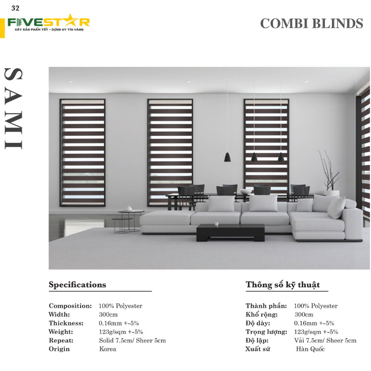 Thông số kỹ thuật mành cầu vồng hãng FIVESTAR mã SAMI