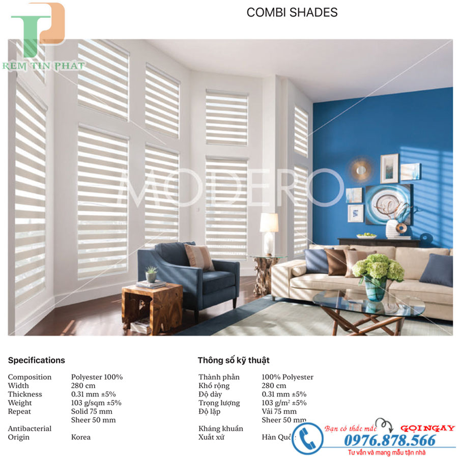 Thông số kỹ thuật rèm cầu vồng modero mã Aqua