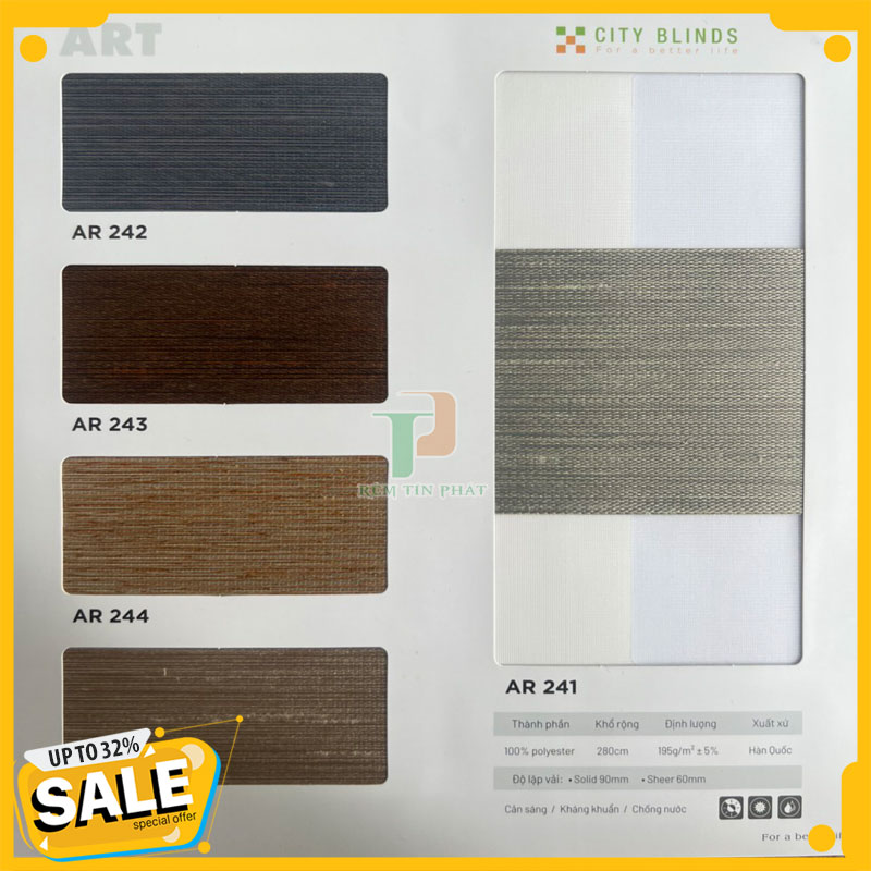 Bảng màu và thông số kỹ thuật rèm cầu vồng hãng City blinds mã ART