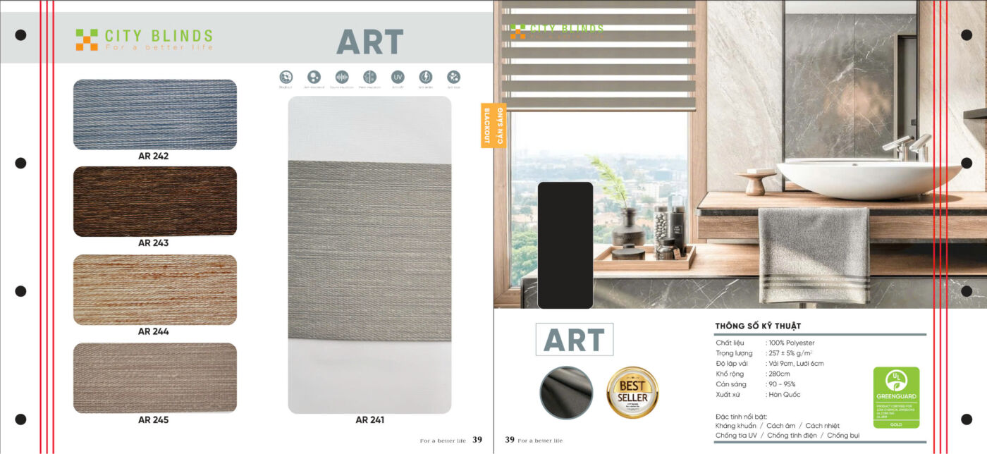 Bảng màu và thông số kỹ thuật rèm cầu vồng City blinds mã Art