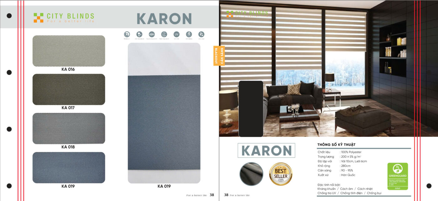 Bảng màu và thông số kỹ thuật rèm cầu vồng City blinds mã Karon