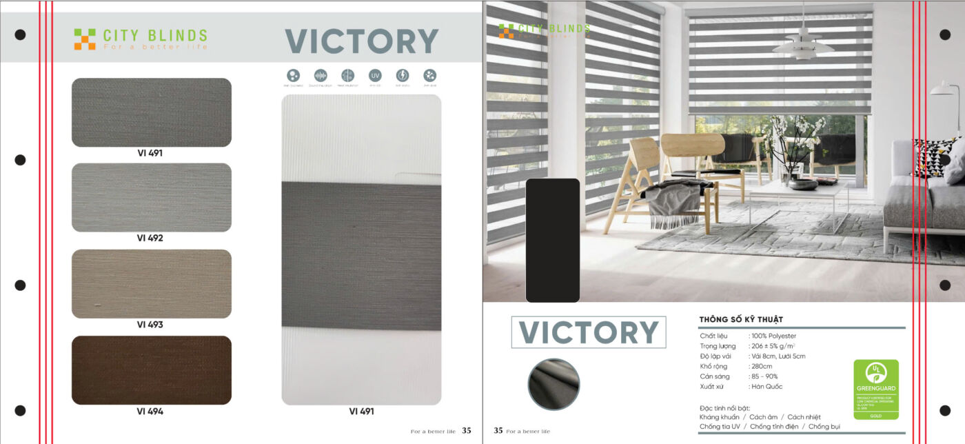 Bảng màu và thông số kỹ thuật rèm cầu vồng City blinds mã VICTORY