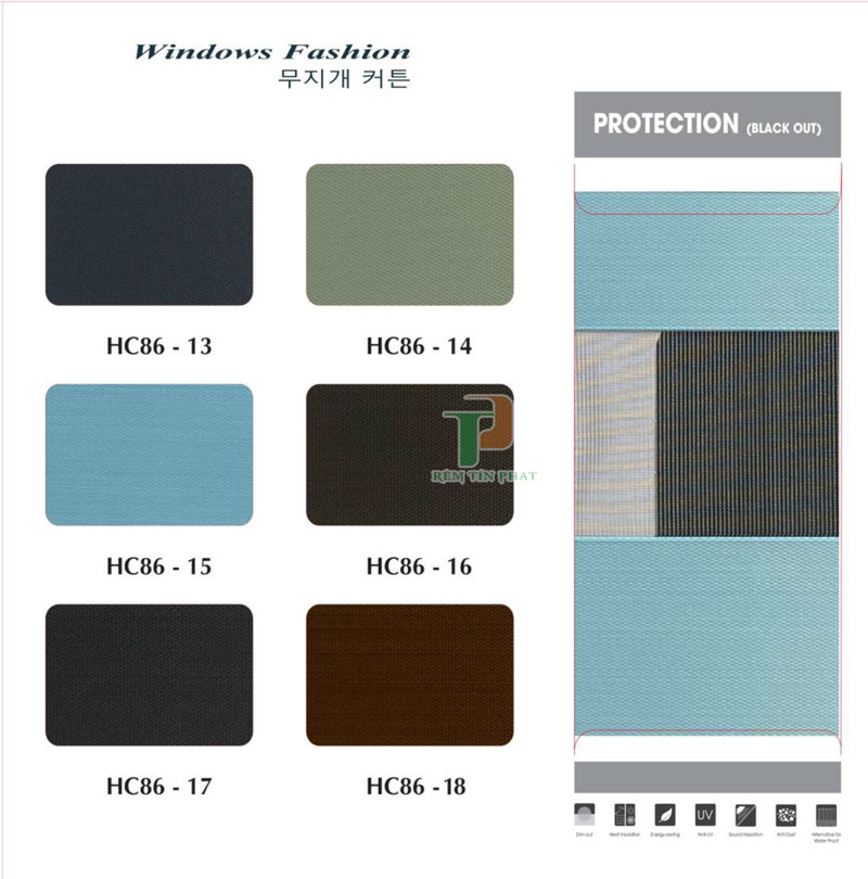 Hệ thống phụ kiện: ống cuộn rèm, thanh đáy, máng che được làm bằng chất liệu nhôm cao cấp, sơn tĩnh điện đồng màu với màu vải. Dây kéo làm bằng dây dù nhập khẩu Hàn Quốc. Củ quay làm bằng nhựa cao cấp có độ bền cao.