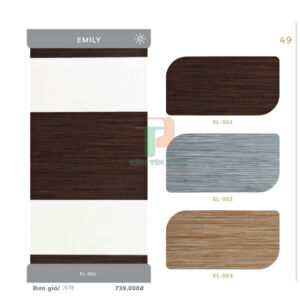 Hệ thống phụ kiện: ống cuộn rèm, thanh đáy, máng che được làm bằng chất liệu nhôm cao cấp, sơn tĩnh điện đồng màu với màu vải. Dây kéo làm bằng dây dù nhập khẩu Hàn Quốc. Củ quay làm bằng nhựa cao cấp có độ bền cao.