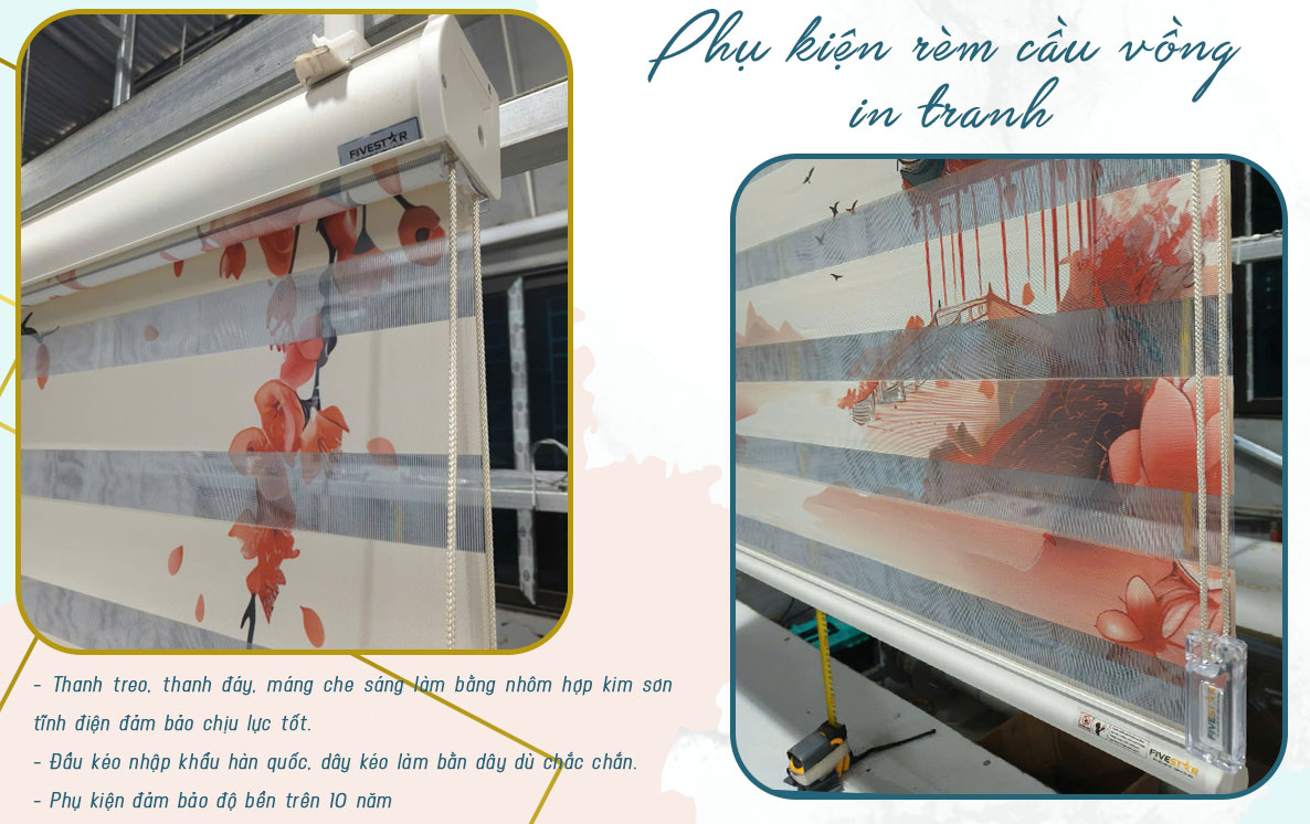 Các mẫu rèm cầu vồng in tranh được in bằng mực UV Mỹ chất lượng cao. Chất lượng mực in tốt giúp bộ rèm in tranh đảm bảo độ bền màu với thời gian.