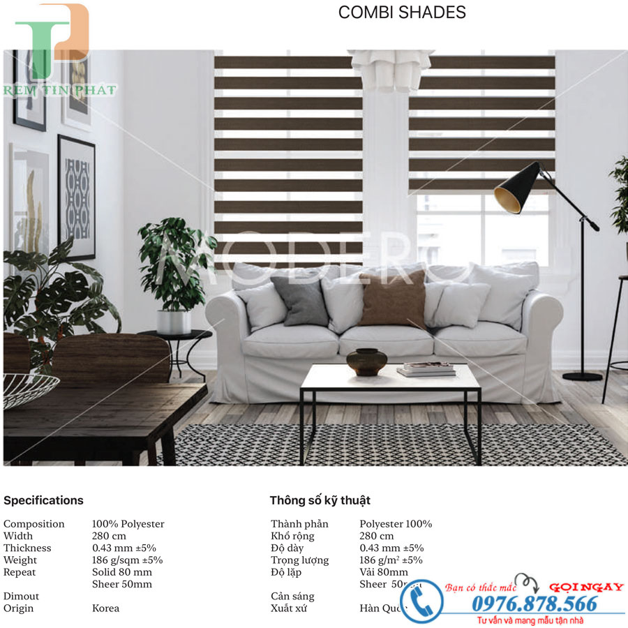 Thông số kỹ thuật rèm cầu vồng modero mã Karon