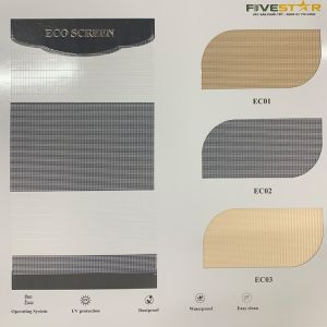 Rèm cầu vồng hãng FIVESTAR được làm từ vải tổng hợp polyester với hai dạng dệt hoàn toàn khác nhau. Trong đó, một lớp vải dày và khít có tác dụng che chắn ánh sáng. Một lớp vải mỏng như lưới giúp tạo ra không gian mở để bạn có thể nhìn xuyên ra bên ngoài. Chất liệu polyester cao cấp có độ bền rất cao, khả năng chống nắng tốt, thân thiện với môi trường và an toàn cho người sử dụng.