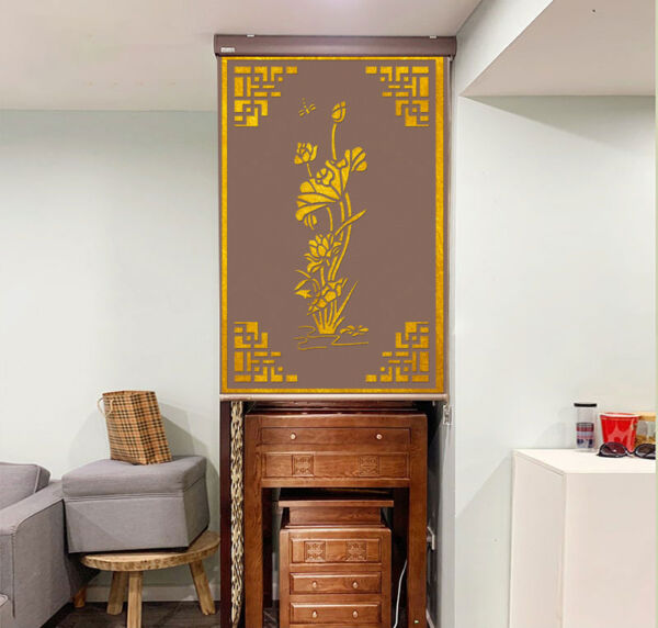 Rèm che ban thờ in họa tiết hoa sen, biểu tượng phật giáo với thiết kế đơn giản, hiện đại, nhiều mẫu mã, họa tiết đa dạng sang trọng nên ngày càng được ưa chuộng.