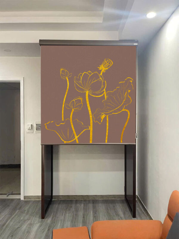 Chất liệu vải rèm cửa in tranh: vải phủ nhựa polyester chuyên dụng trong ngành rèm. Vải chống nắng 100%, chống nước, chống bám bụi, dễ vệ sinh lau chùi.