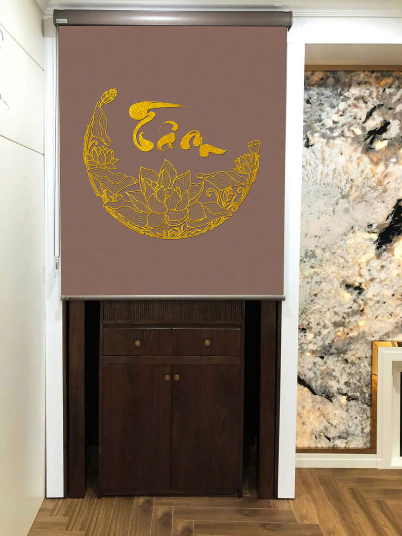 Rèm che ban thờ in họa tiết hoa sen, biểu tượng phật giáo với thiết kế đơn giản, hiện đại, nhiều mẫu mã, họa tiết đa dạng sang trọng nên ngày càng được ưa chuộng.
