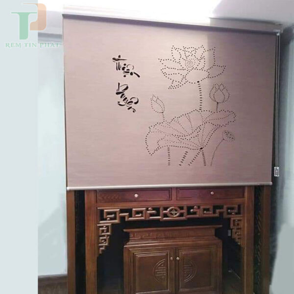 Rèm cửa đục lỗ họa tiết hoa sen che bàn thờ KHS04
