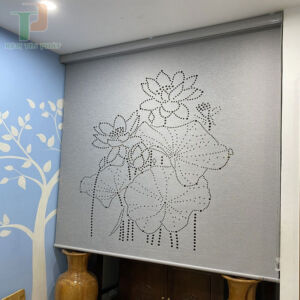 Rèm cuốn đục lỗ che bàn thờ họa tiết hoa sen đẹp KHS08