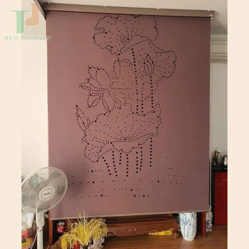 Rèm che bàn thờ khắc laze họa tiết hoa sen KHS10