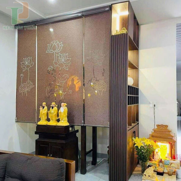 Rèm che bàn thờ khắc laze họa tiết hoa sen KHS14