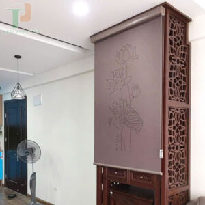 Rèm bàn thờ chung cư khắc laze họa tiết hoa sen KHS29