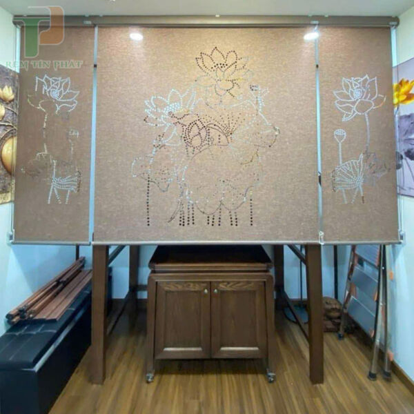Mành che ban thờ đẹp khắc laze họa tiết hoa sen KHS33