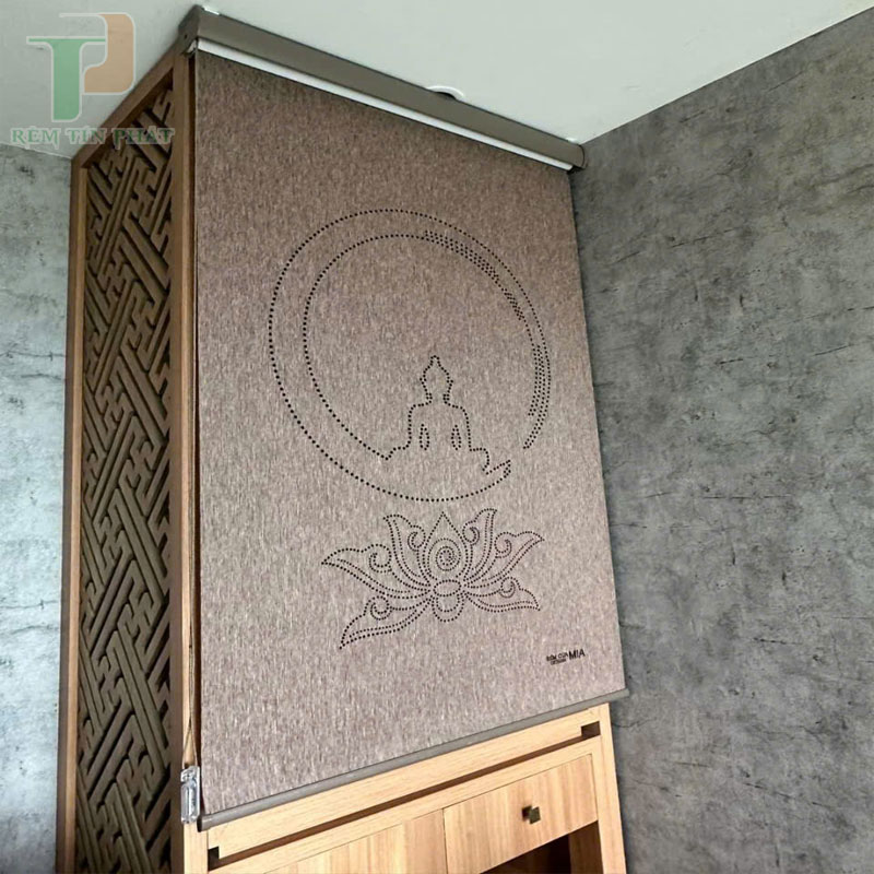 Mành rèm che bàn thờ đẹp khắc laze họa tiết hoa sen KHS45