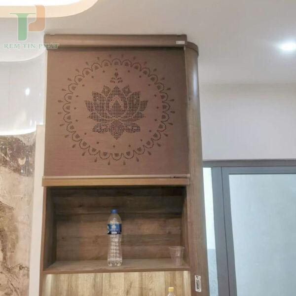Rèm cuốn che bàn thờ giá rẻ khắc laze họa tiết hoa sen KHS47