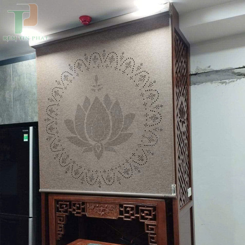 Rèm cuốn che bàn thờ khắc laze họa tiết hoa sen KHS48
