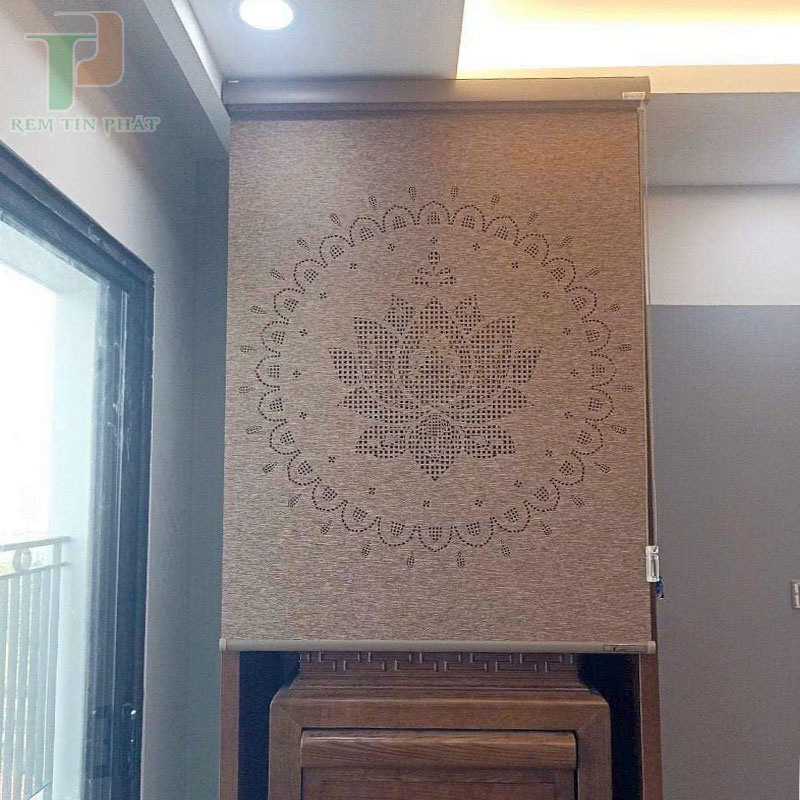 Rèm che bàn thờ khắc laze họa tiết hoa sen KHS54