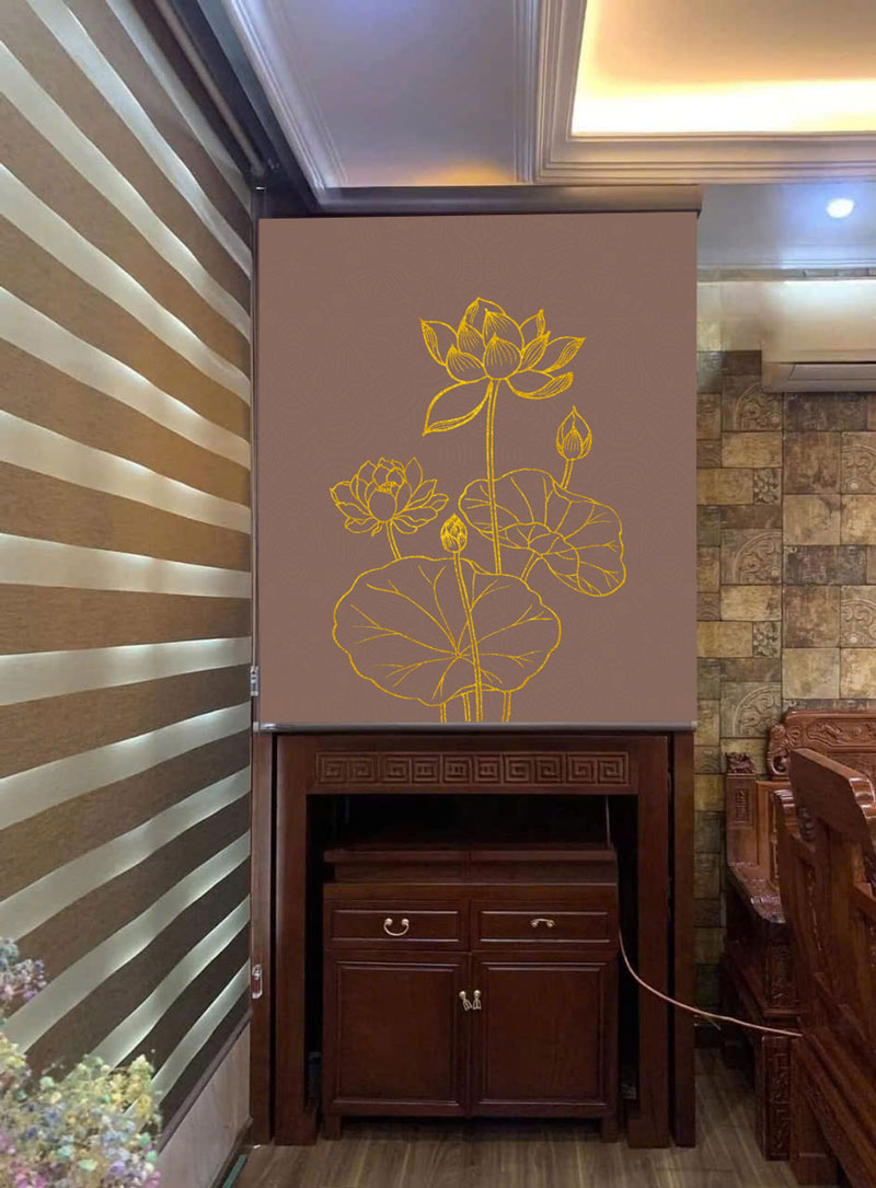 Rèm che ban thờ in họa tiết hoa sen, biểu tượng phật giáo với thiết kế đơn giản, hiện đại, nhiều mẫu mã, họa tiết đa dạng sang trọng nên ngày càng được ưa chuộng.