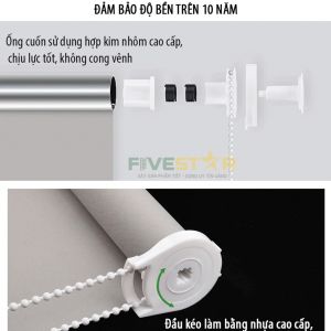 - Hộp phụ kiện của rèm cuốn FIVESTAR thường là hợp kim nhôm được phủ sơn tĩnh điện cao cấp, có tuổi thọ lâu bền. Thông thường các hộp phụ kiện sẽ được lựa chọn màu sắc đồng bộ với màu sắc vải để tạo nên vẻ đẹp hài hòa cho bộ rèm.