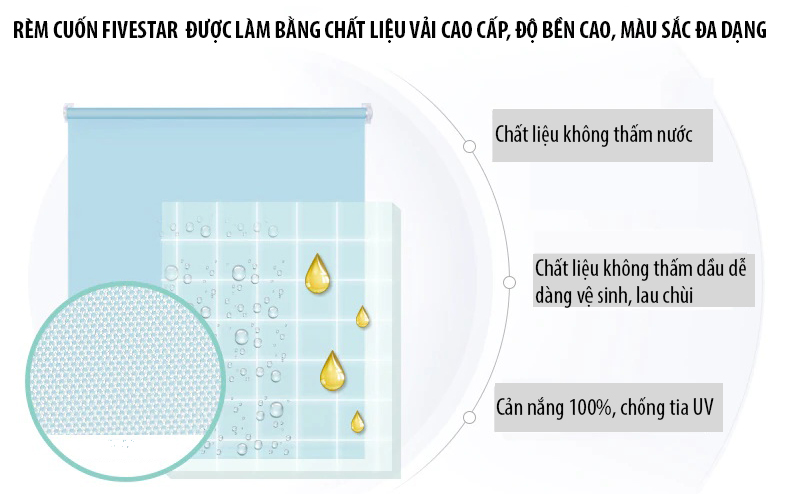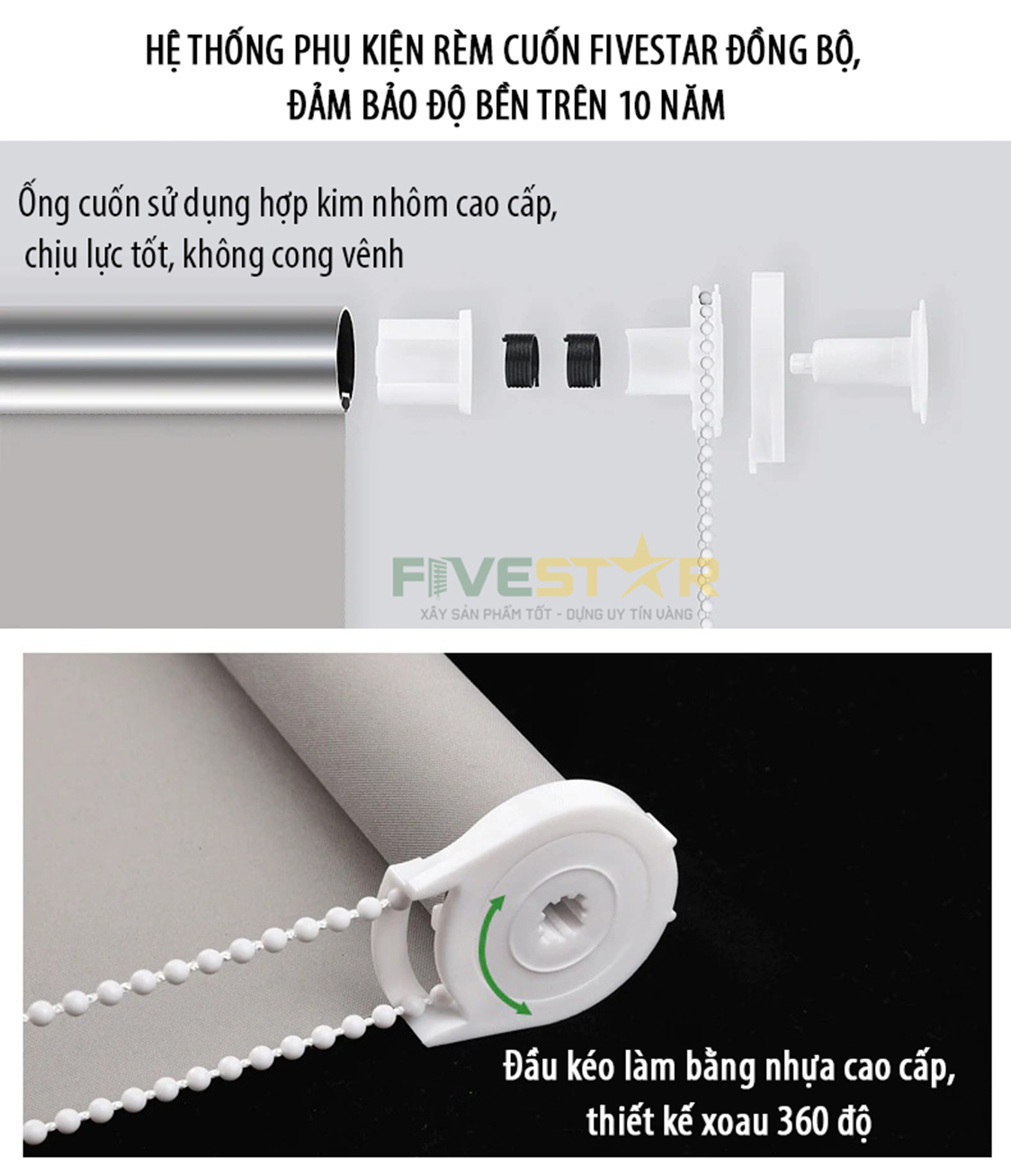 Với hệ thống phụ kiện và chất liệu chất lượng tốt cùng hệ thống máy móc sản xuất hiện đại, đội ngũ công nhân lành nghề, rèm cuốn hãng FIVESTAR luôn được đánh giá là một trong những sản phẩm Việt Nam chất lượng cao trong lĩnh vực mành rèm.