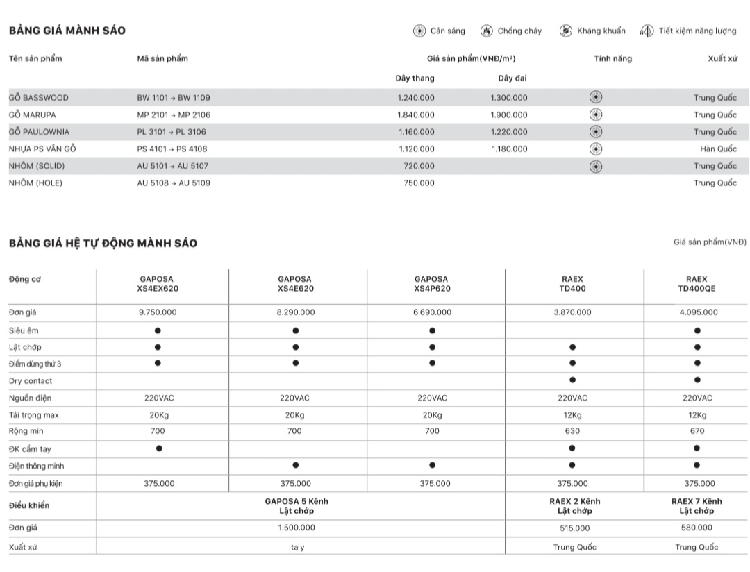 - Mành sáo gỗ được sản xuất từ chất liệu Gỗ Basswood (họ bạch dương) 100% tự nhiên, gỗ Sồi, gỗ thông tuyết, gỗ dương cầm, nhựa pvc giả gỗ, tre… nhập khẩu trực tiếp từ Nga và Mỹ, đã qua xử lý cong, vênh bằng công nghệ hấp, tẩm, sấy tiên tiến.