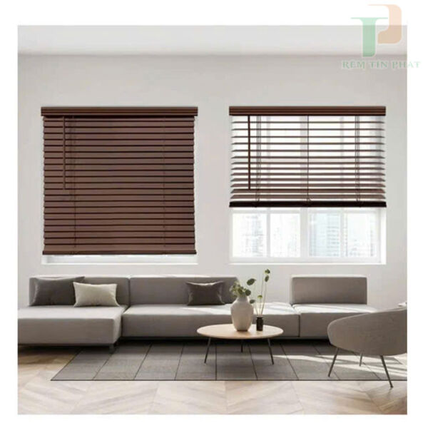 Rèm gỗ hệ 2 dây, có 1 dây dùng để kéo lên hạ xuống, 1 dây để xoay lật nan gỗ để đóng mở rèm.