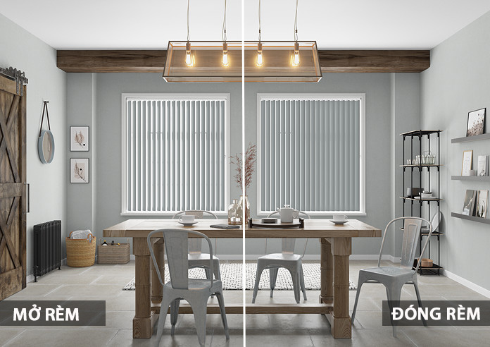 ⇒ Rèm lá có thể tùy chỉnh ánh sáng một cách dễ dàng, linh hoạt. Mành sáo dọc có thể kéo dạt hết sang 1 bên hoặc đều 2 bên , đồng thời có thể xoay lật phải/trái 180 độ giúp bạn dễ dàng điều chỉnh mức độ ánh sáng cho căn phòng của bạn