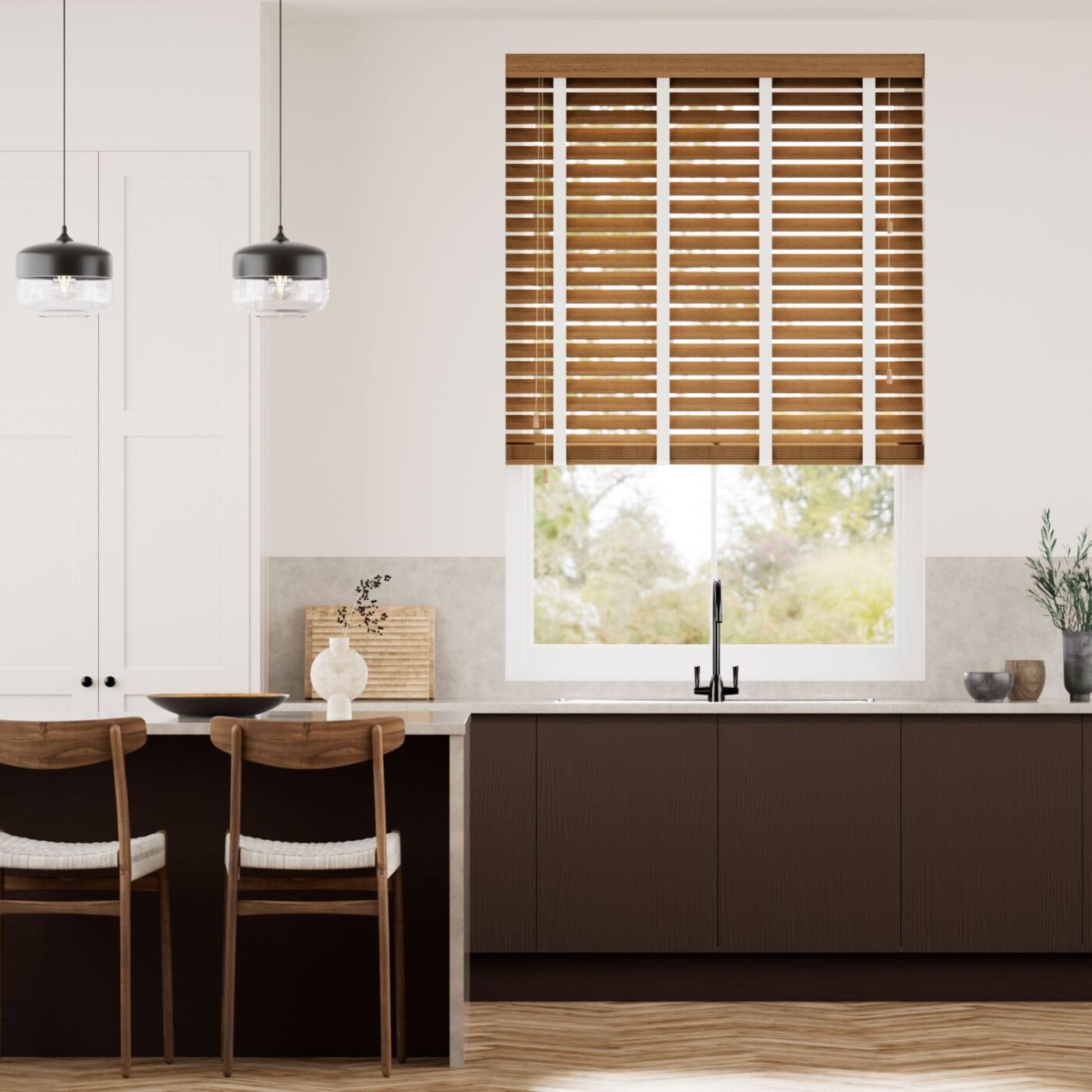 Rèm nhựa giả gỗ hãng Sankaku bản 5cm hệ 2 dây mã SKK503