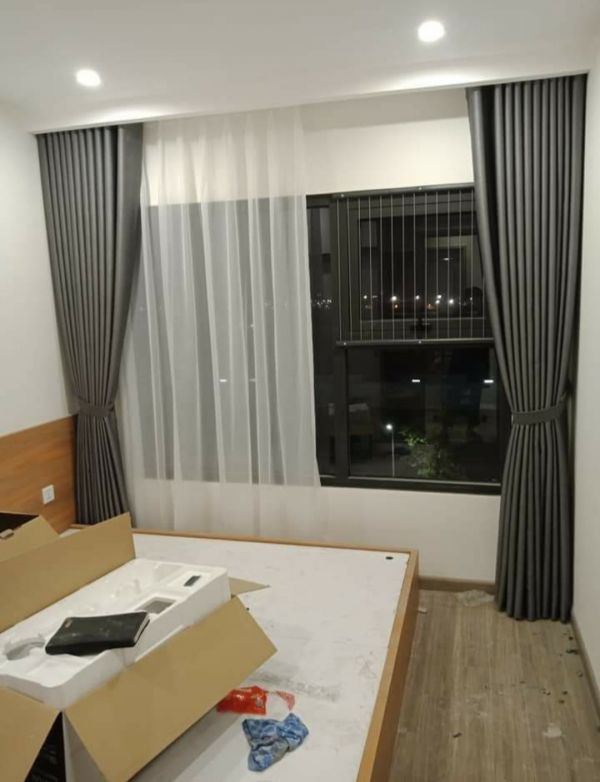 Rèm vải 2 lớp màu tối cản nắng tốt cho phòng ngủ chung cư