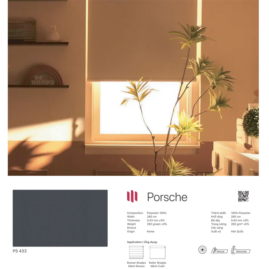 Rèm cuốn tự động – Hệ khung Lumi Square – Mã vải Porche | 860.000 |