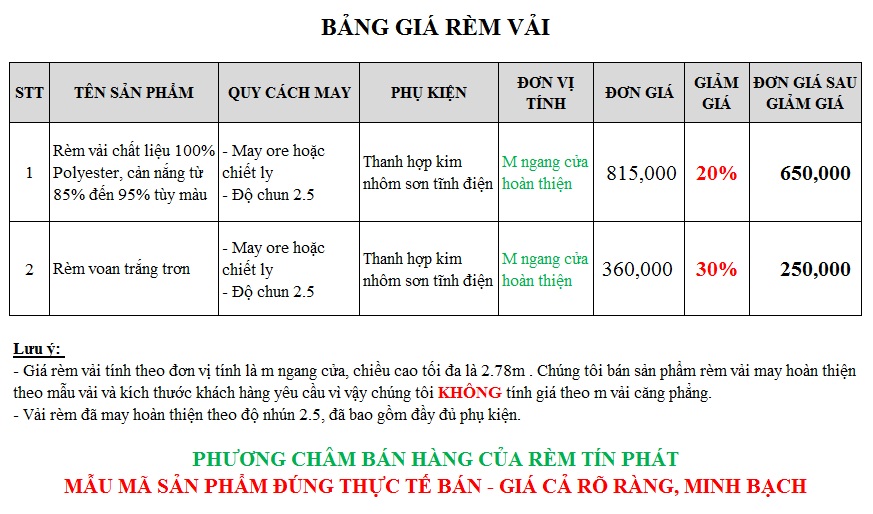 Hiện nay chúng tôi đang có chương trình giảm giá màn vải lên đến 30%. Giá chỉ từ 395K/mngang. Vui lòng liên hệ để có giá tốt nhất!