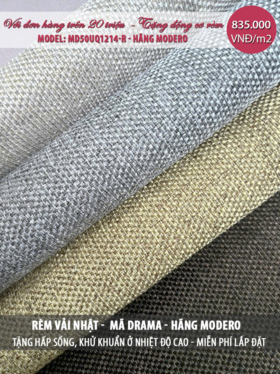 | Rèm vải Nhật Bản mã Drama (May hoàn thiện theo tiêu chuẩn của hãng) | 835.000 |