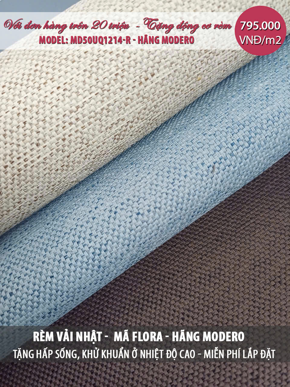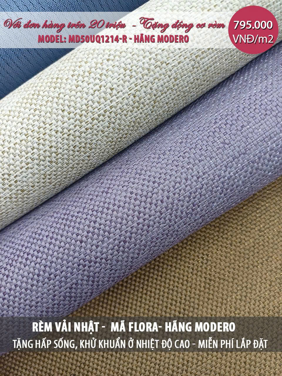Báo giá Rèm vải tự động Nhật Bản Mã Flora | Động cơ rèm Modero mã MD50UQ1214-R
