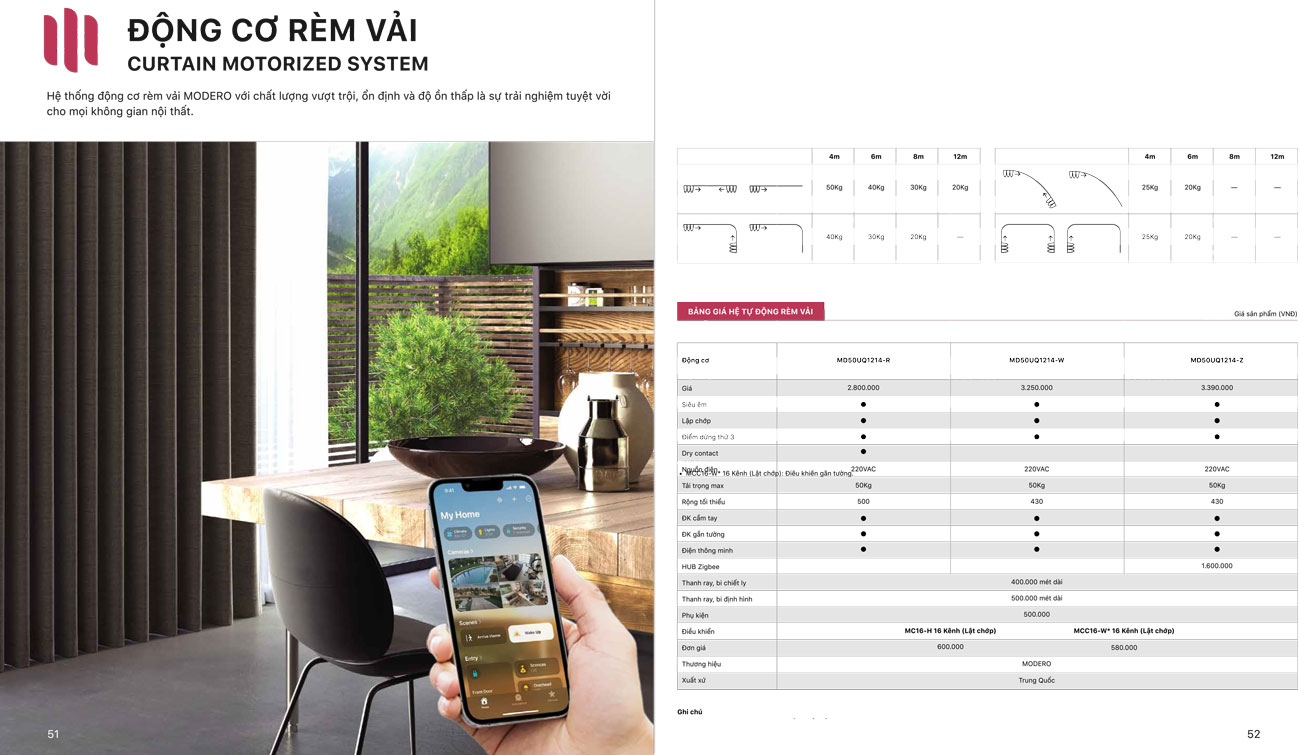 Báo giá Rèm vải tự động Nhật Bản Mã Luna | Động cơ rèm Modero mã MD50UQ1214-R