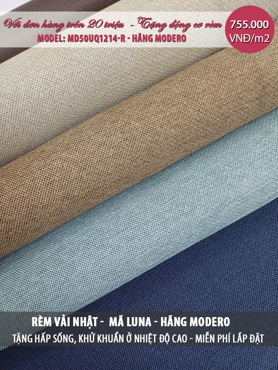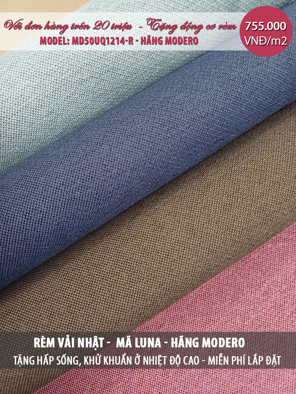 Rèm vải Nhật Bản mã Luna(May hoàn thiện theo tiêu chuẩn của hãng) | 755.000 |