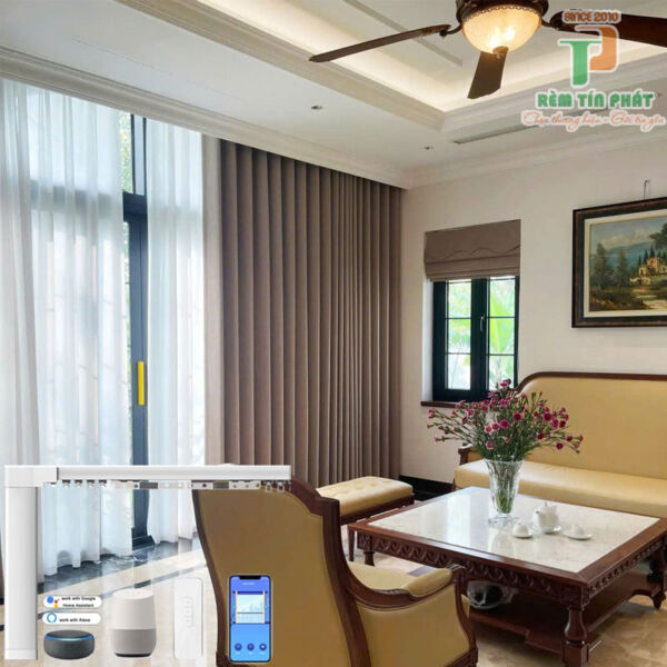Rèm vải tự động là loại rèm cửa sử dụng động cơ điều khiển bằng điện thay vì kéo tay như rèm truyền thống. Rèm có thể được điều khiển từ xa bằng remote, công tắc gắn tường, hoặc qua ứng dụng trên điện thoại, thậm chí là tự động hóa theo lịch trình hoặc cảm biến ánh sáng nếu tích hợp với hệ thống nhà thông minh.